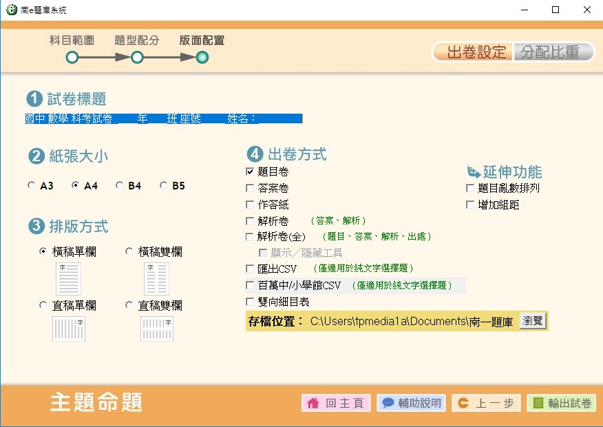 �X���]�w�G���ѥX���ɪ����B�ȱi�j�p�B�X���覡���]�w�C